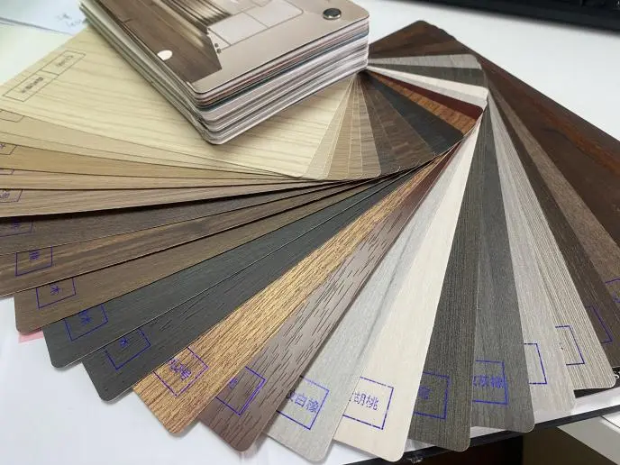 Jerin hatsi na Jerin Dutse: Grashin dutse na ado pvc Fina-finai don compaum forming ya bayyana kwaikwayon yanayin marmara, granitent. Ana amfani dasu galibi don counts ɗin dafa abinci, abubuwan wutsiya, da kayan ado na bango, suna maye gurbin dutse don rage nauyi da tsada.